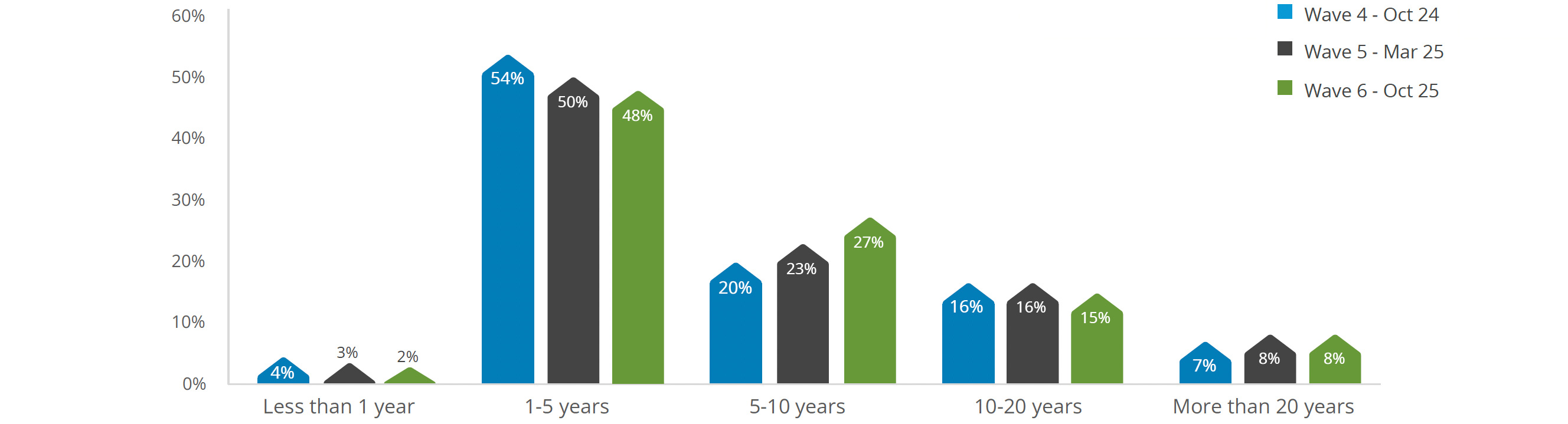 The number of tenants moving into new rentals has stayed the same for a second wave. Only 18% of respondents stated they moved in the last 12 months, 2% higher than March 2025.